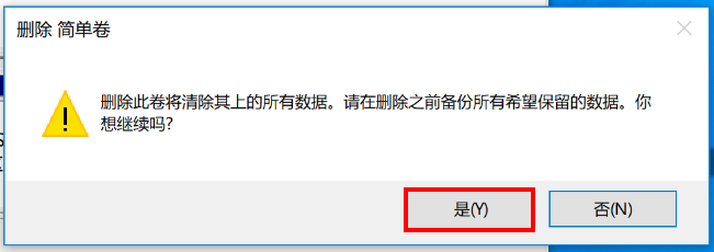 1. 确认删除卷,点击“是”。