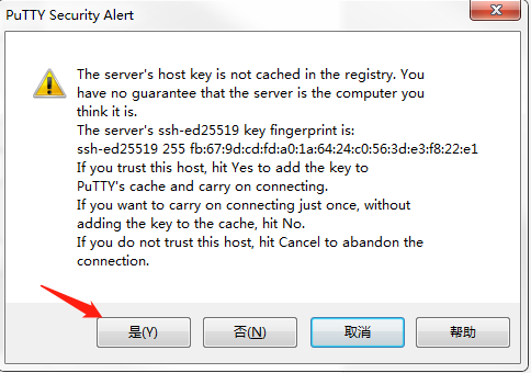 首次连接请点击是(Y)继续。