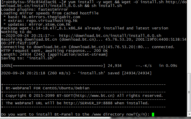 根据提示输入y,回车确认安装。
